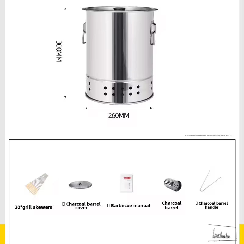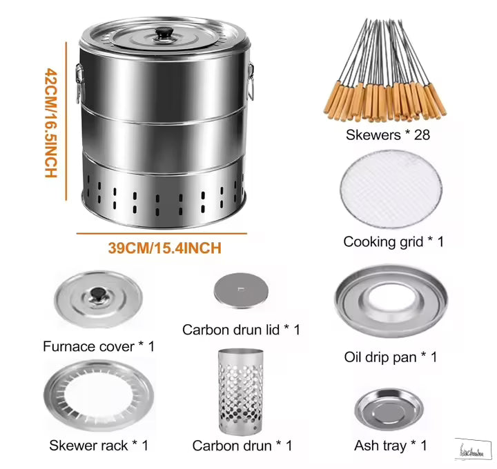 * Complete Portable Kit: Includes 20 stainless steel skewers, grilling grid, turning clip, food stringer, cleaning brush, and carrying handle—everything needed for outdoor BBQ in one compact system.