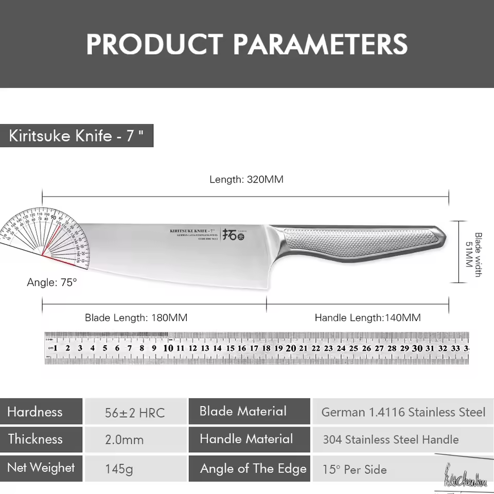 Elevate your cooking experience with the Kiritsuke Knife, crafted for precision and durability. A perfect addition to any kitchen, it combines high-quality materials with a sleek, functional design.