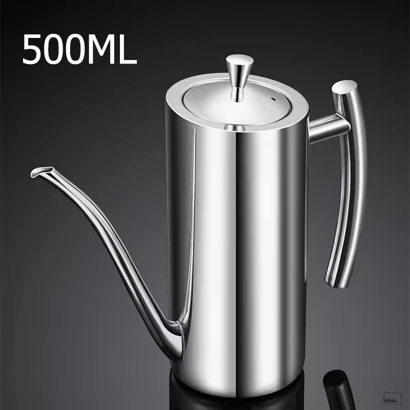 - Crafted from thickened 304 stainless steel with a mirror-polished finish, this oil dispenser is wear-resistant, durable, and free from discoloration or paint chipping.