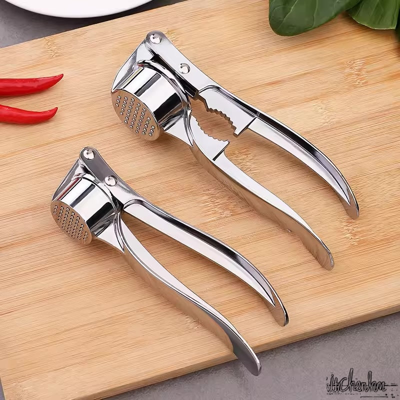 **Description:** Experience ultimate versatility with our dual-size stainless steel crusher. The larger model is engineered to function as both a powerful garlic press and an effective walnut cracker, providing two essential kitchen tools in one durable, rust-resistant device. Crafted from high-quality stainless steel, its ergonomic handles ensure comfortable, efficient crushing with minimal effort. This multi-functional tool is perfect for everything from mincing garlic for sauces to cracking walnuts for baking, all while being easy to clean and store.