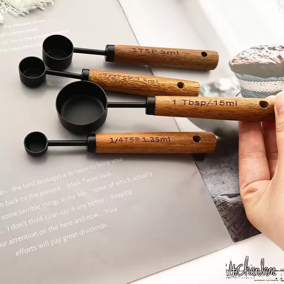- Material: Stainless Steel (measuring spoon) + Natural Wood (handle)